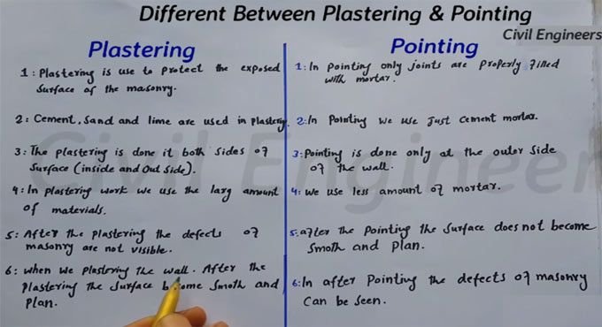 1. What is the main difference between plastering and pointing?