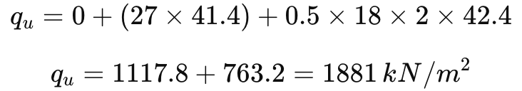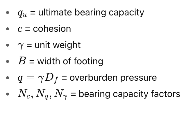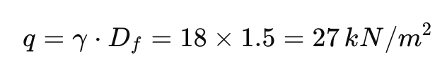 Net Ultimate Bearing Capacity (qun) | qu−γDfqu – \gamma D_fqu−γDf, subtracting overburden pressure. | Refines analysis. |