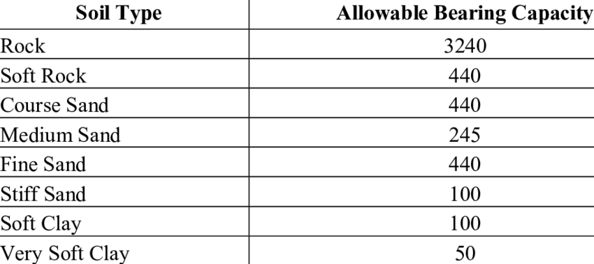 Type of Soil | Safe Bearing Capacity (kN/m²) | Safe Bearing Capacity (kg/cm²) |