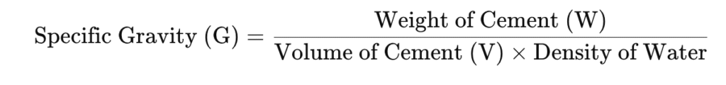 Specific gravity is defined as the ratio of the weight of cement to the weight of an equal volume of water at a specified temperature.